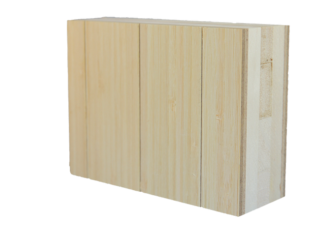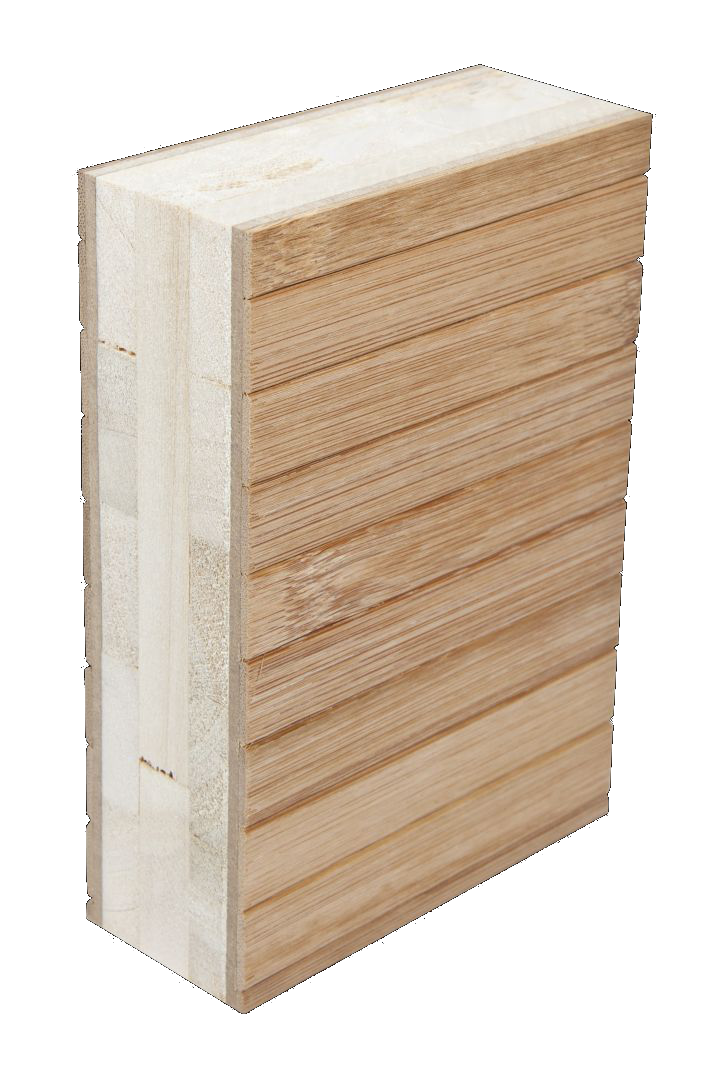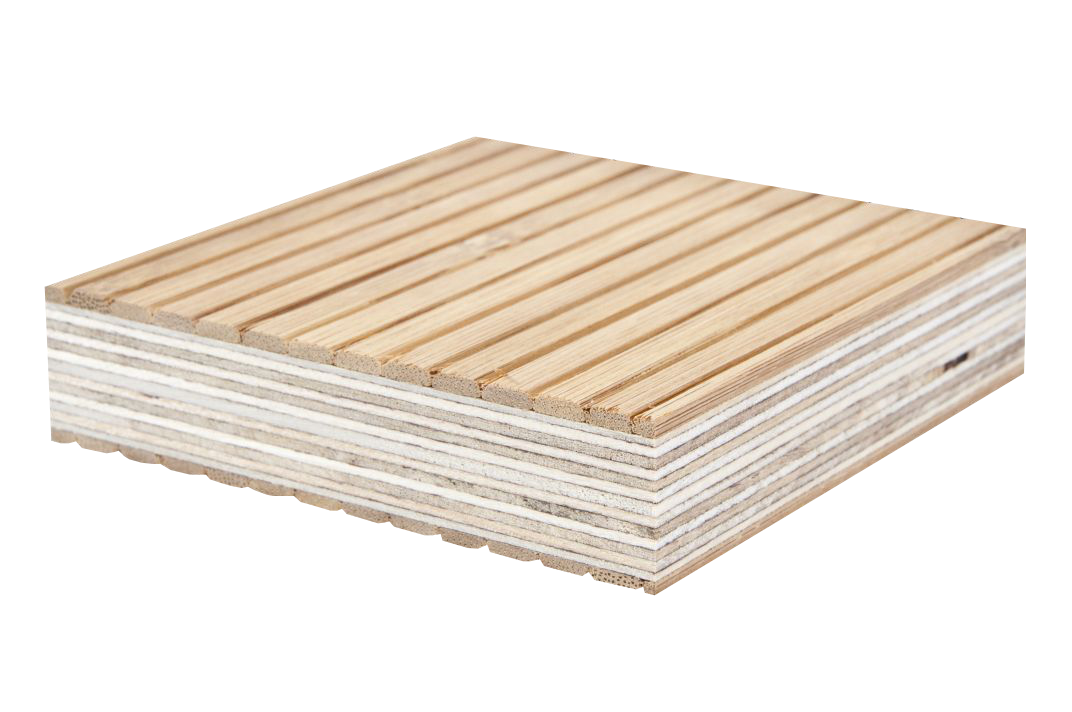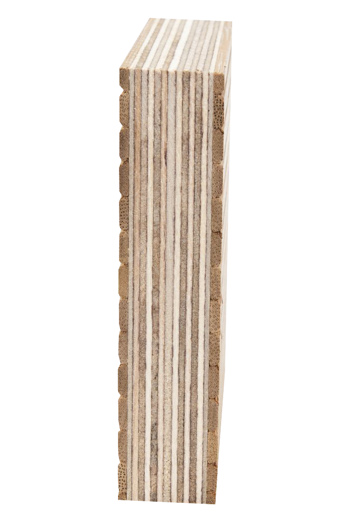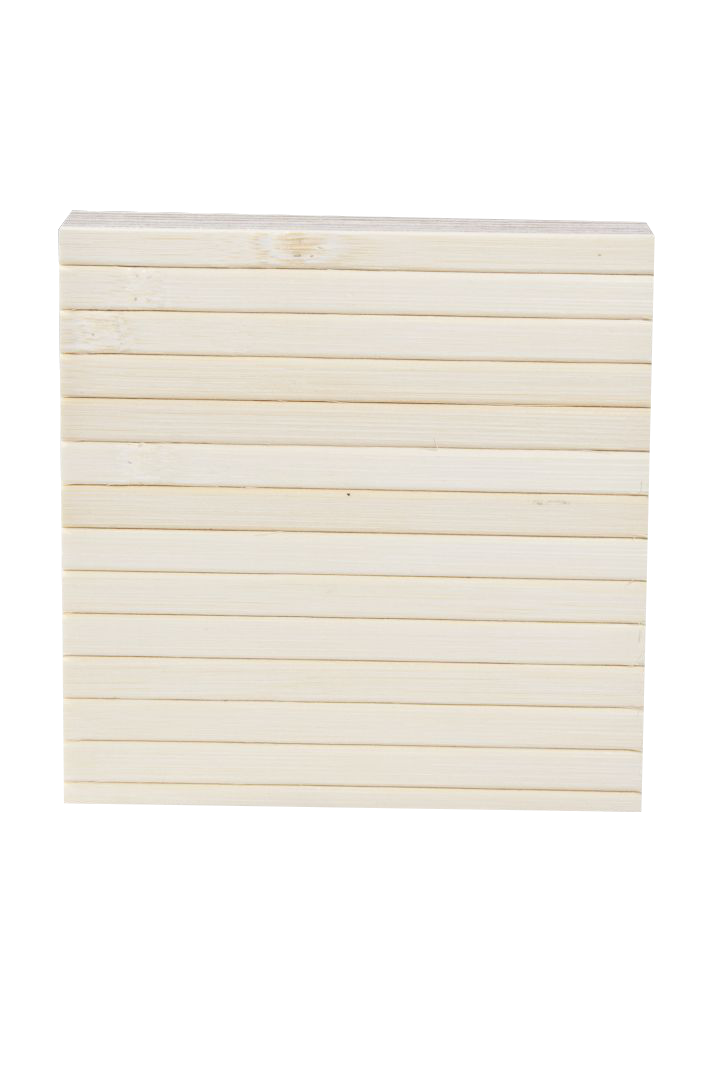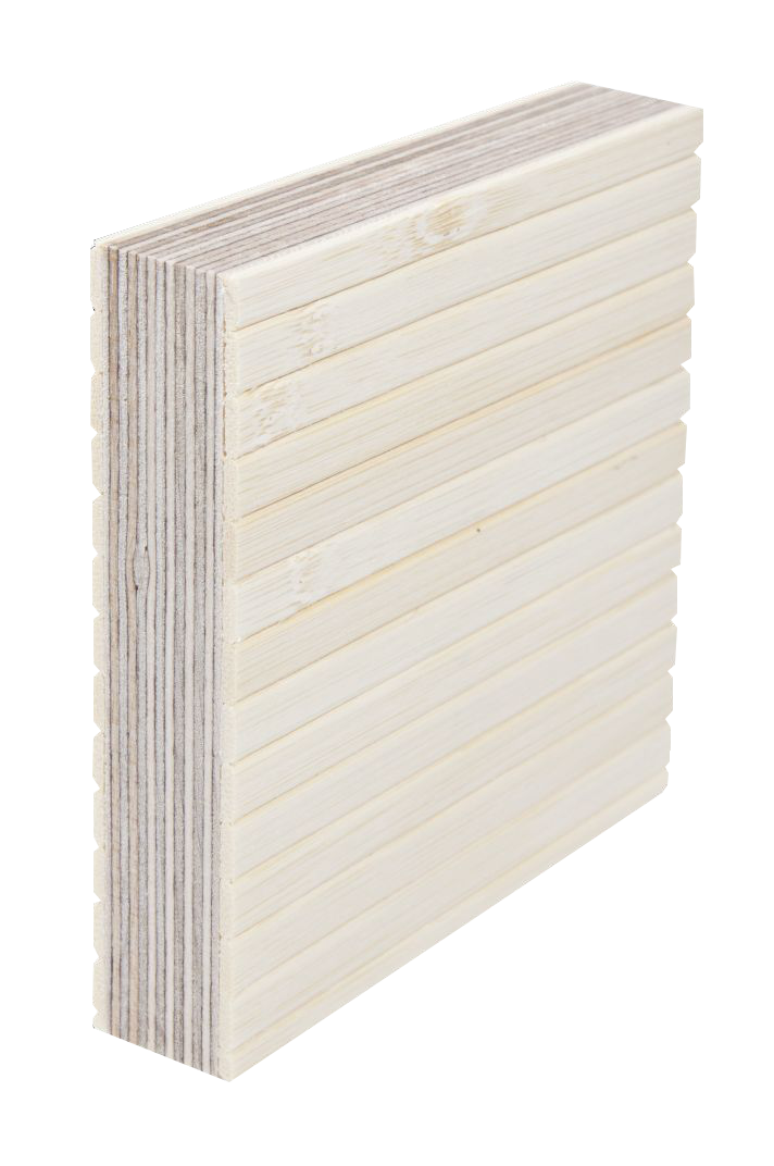 The bamboo tambour mats are laminated onto Eco-Core® White Birch Multiply with low formaldehyde adhesive.
